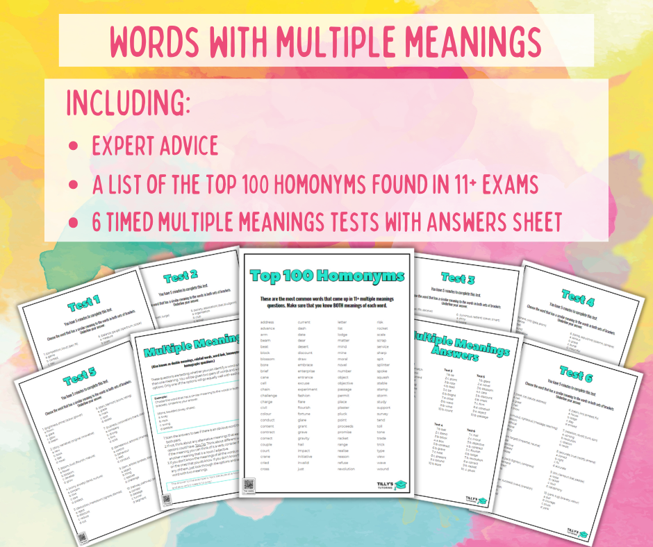 - Top 100 Homonyms List - a list of the most common words that appear in 11+ multiple meanings questions