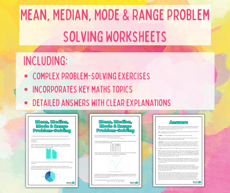 I’ve created this set of worksheets to focus on advanced problem-solving with mean, median, mode, and range, also integrating other essential topics like percentages and statistics.
