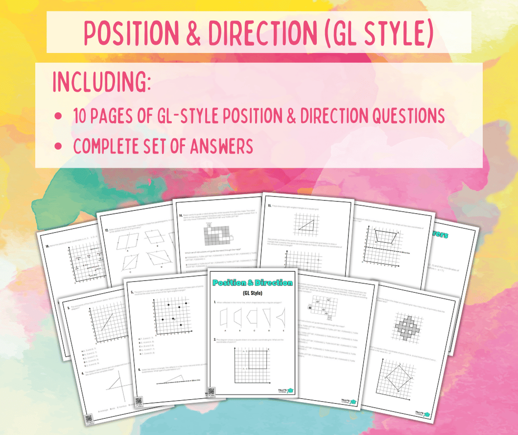 These worksheets cover the 'Position & Direction' topic, i.e. co-ordinates, reflection, symmetry and 2D shapes.